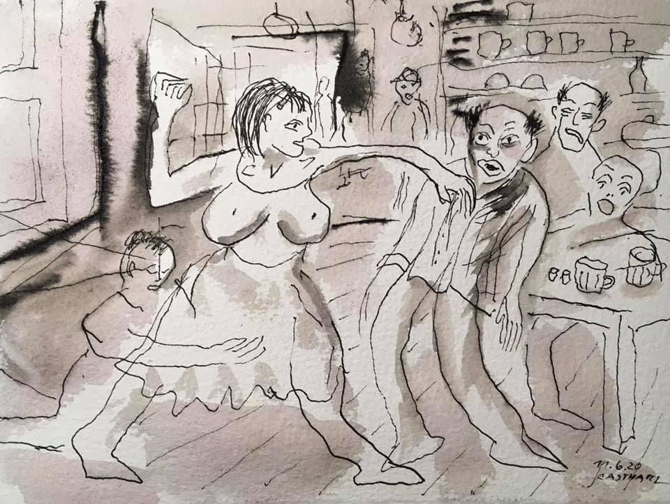 - Kresby - pijáci