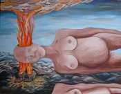 Padající hořící hlavy, 80 x 100 cm, olej na plátně, podzim 2010, obraz navazující na knížku Mořská dívka