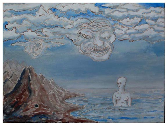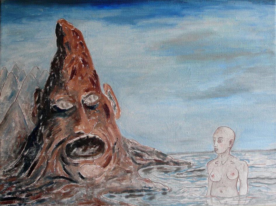 Telepatie, 33 x 45 cm, olej na plátně, podzim 2010, obraz navazující na knížku Mořská dívka